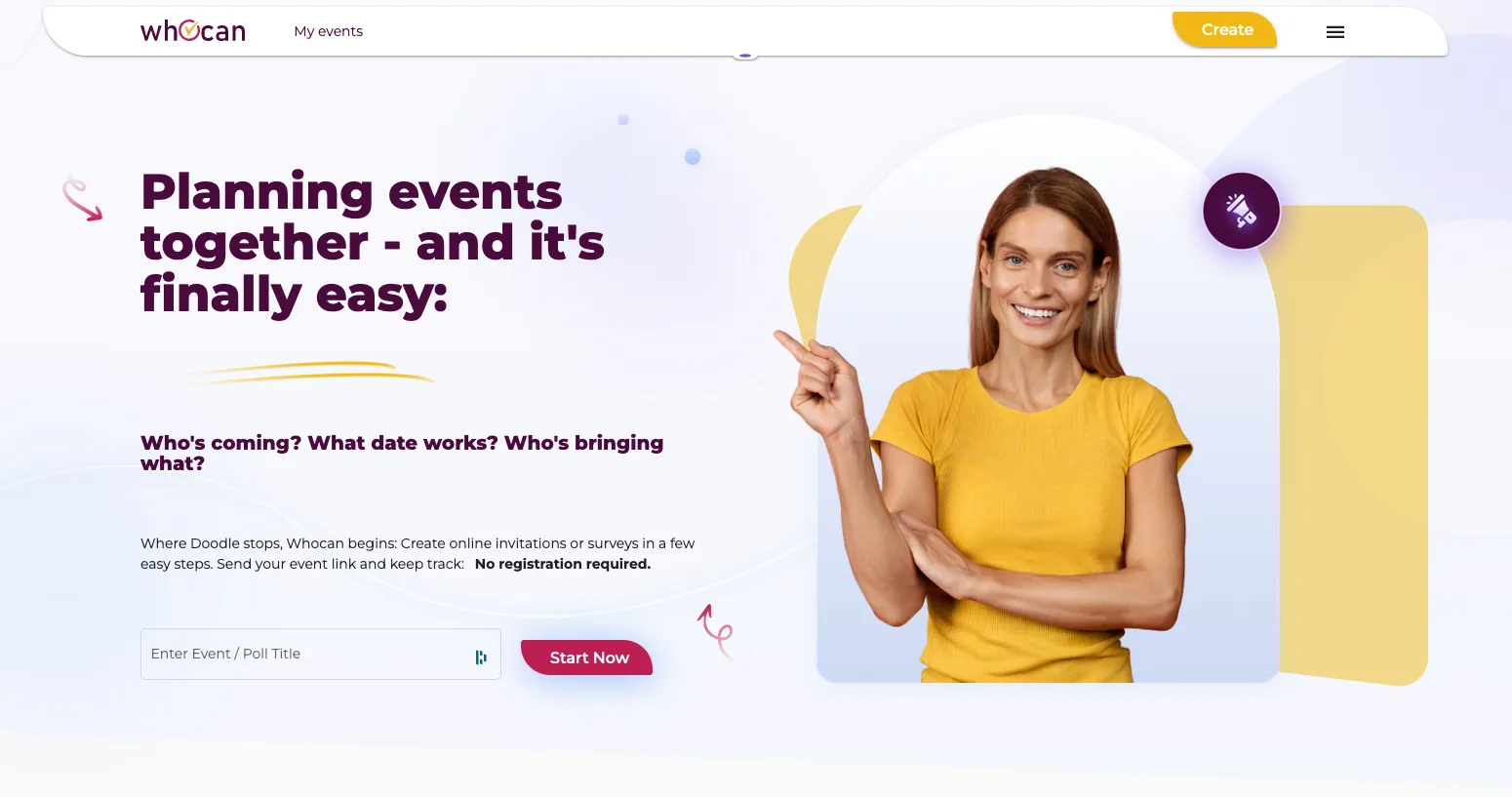 Whether you’re tasked with coordinating a move, scheduling lunch meetings, or managing sports practices, Whocan offers a versatile platform to facilitate your event planning needs. Our service provides an array of survey options, allowing you to choose pre-designed surveys or create custom ones to suit your specific requirements.