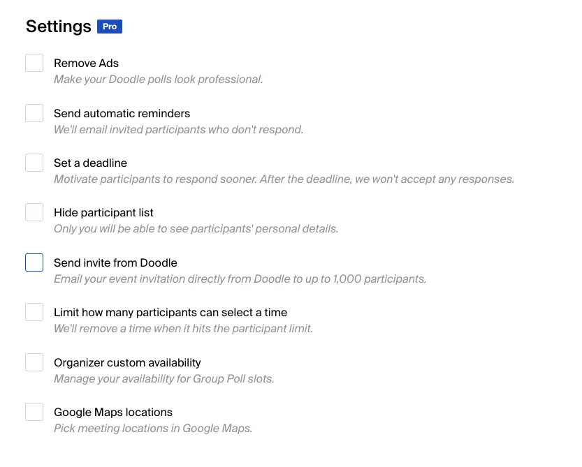 While Doodle’s free features work well for basic scheduling, its limitations in creating a comprehensive meeting poll and group survey might make it less appealing for more complex needs.