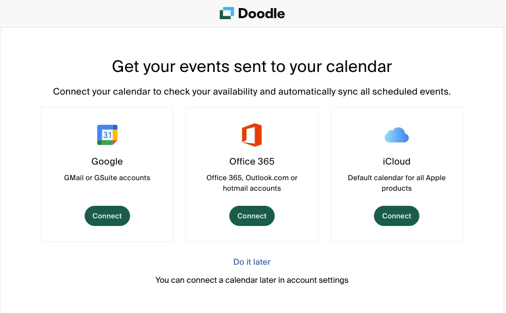 Seamless calendar integration with Google Calendar, Office 365, and iCloud