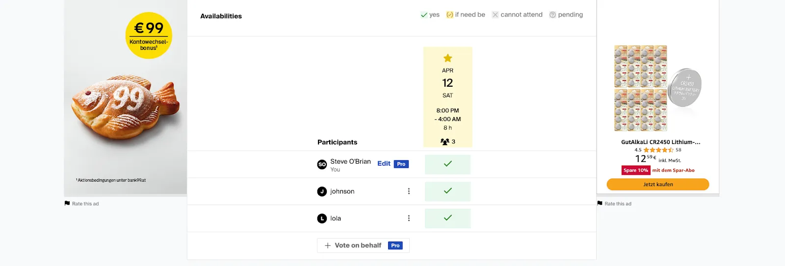After our colleagues received the link, they were able to vote for the date that best suited their schedules. The option to select “if necessary” is especially useful—it indicates that while the person is available on that date, they would prefer another option if possible. Voters also have the option to receive updates about the vote by checking a box.